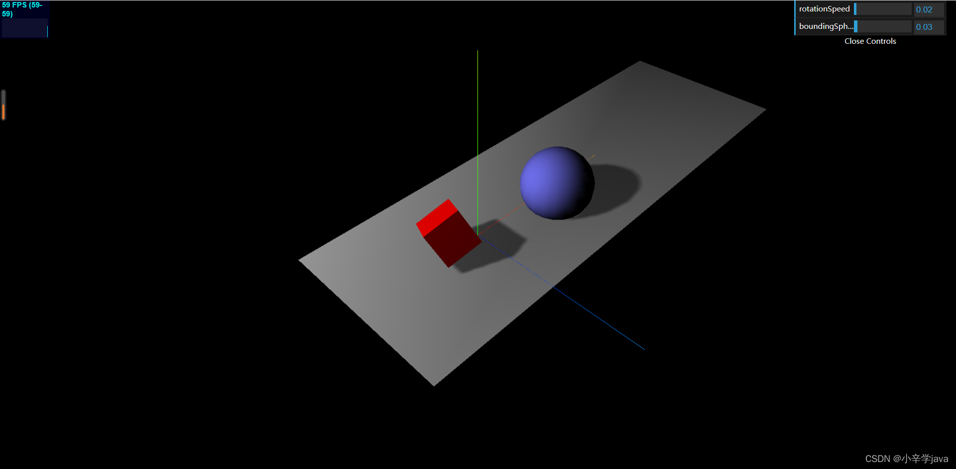 # 现在场景仅是经过一次渲染过的二维场景, ? # 引入requestAnimationFrame函数让场景不停的进行渲染实现三维效果 ? # 引入stats库 ,可观察渲染频率,与渲染一次的时间或者cpu内存占用 4 添加立方体旋转 与 小球跳跃 动画,调用datGUI库实现页面组件进行改变立方体与球旋转与跳跃的速度5 当浏览器大小发生改变时,例: F12调试代码时或者屏幕大小发生改变,画面不会跟随界面变动进行适应。 # 添加场景对浏览器的自适应功能 ? ===== 添加监听器