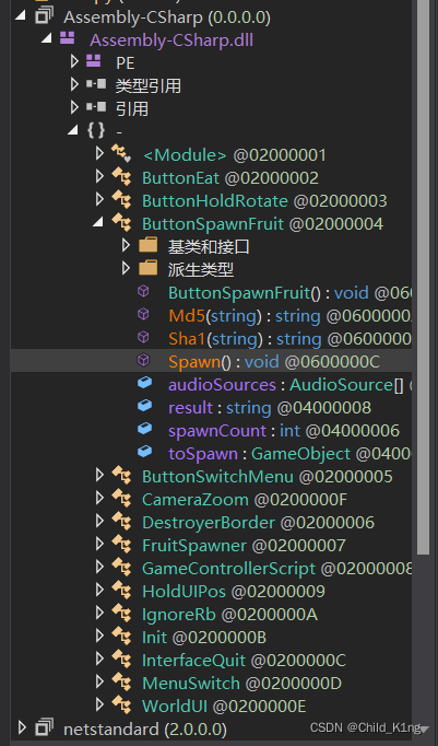 ????????之所以要打开这个文件是因为unity在打包后,会将所有的代码打进一个Assembly-CSharp.dll的文件里面,通过这个文件的反编译,就能详细看见里面的代码内容。