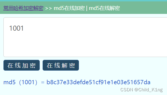 再将得到结果进行MD5加密,MD5在线加密网站。