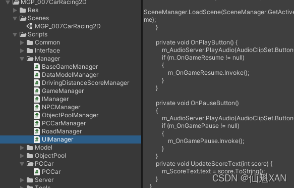 33、在工程中添加 NPCManager 脚本,主要功能是获取UI元素,添加按钮事件,以及分数在UI上的更新事件