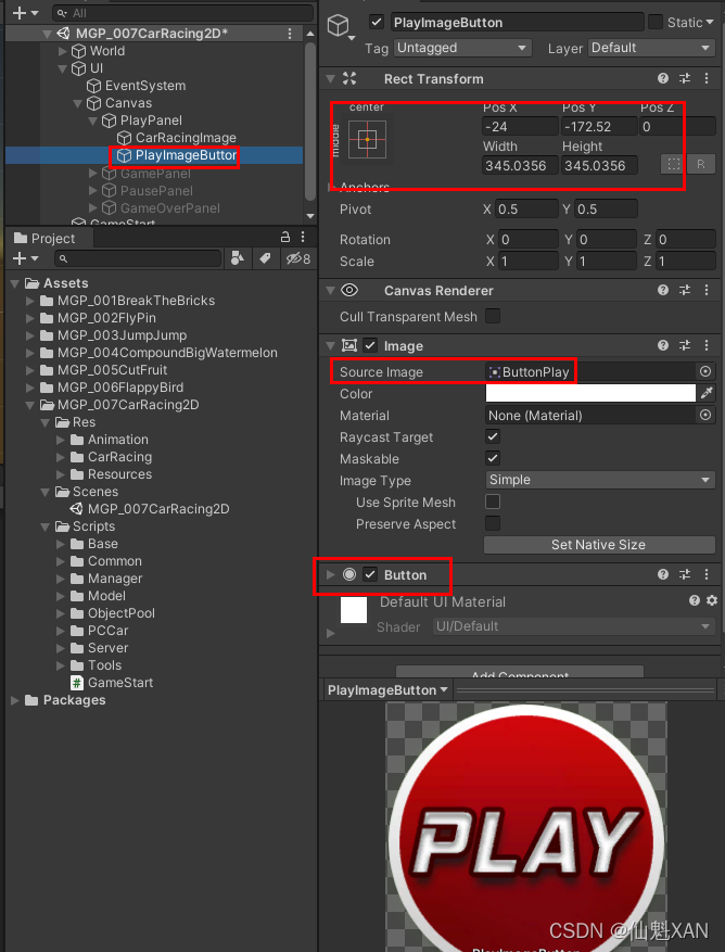 12、添加 PlayPanel,各个参数设置,和效果图如下