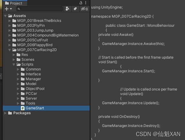 36、GameStart 脚本,整个游戏的入口,管理对应 GameManager 的 Awake(),Start(),Update(),OnDestroy() 对应函数功能