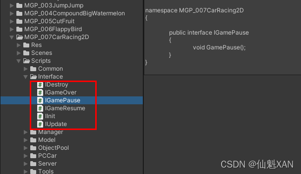 18、在 Interface,添加各种基础的接口,便于具体类的功能指定添加