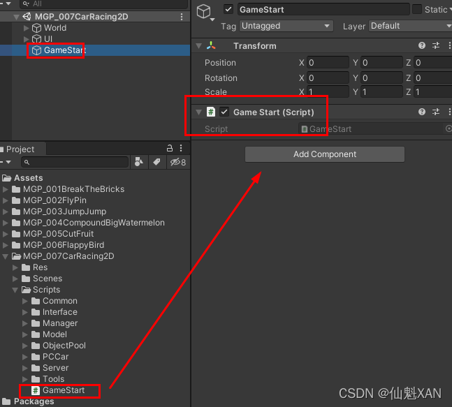 37、在场景中添加 GameObject 空物体,改名为 GameStart,并且挂载 GameStart 脚本