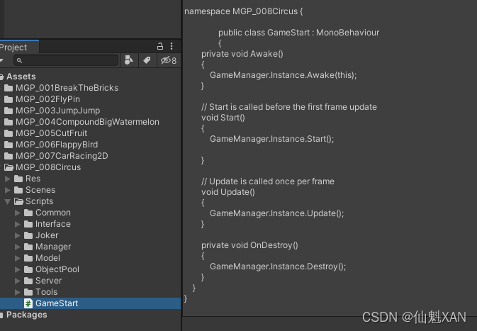 33、GameStart 脚本,整个游戏的入口,管理对应 GameManager 的 Awake(),Start(),Update(),OnDestroy() 对应函数功能
