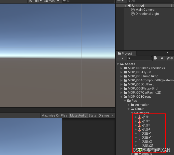 1、打开 Unity,导入相关资源,并把图片都转为精灵图
