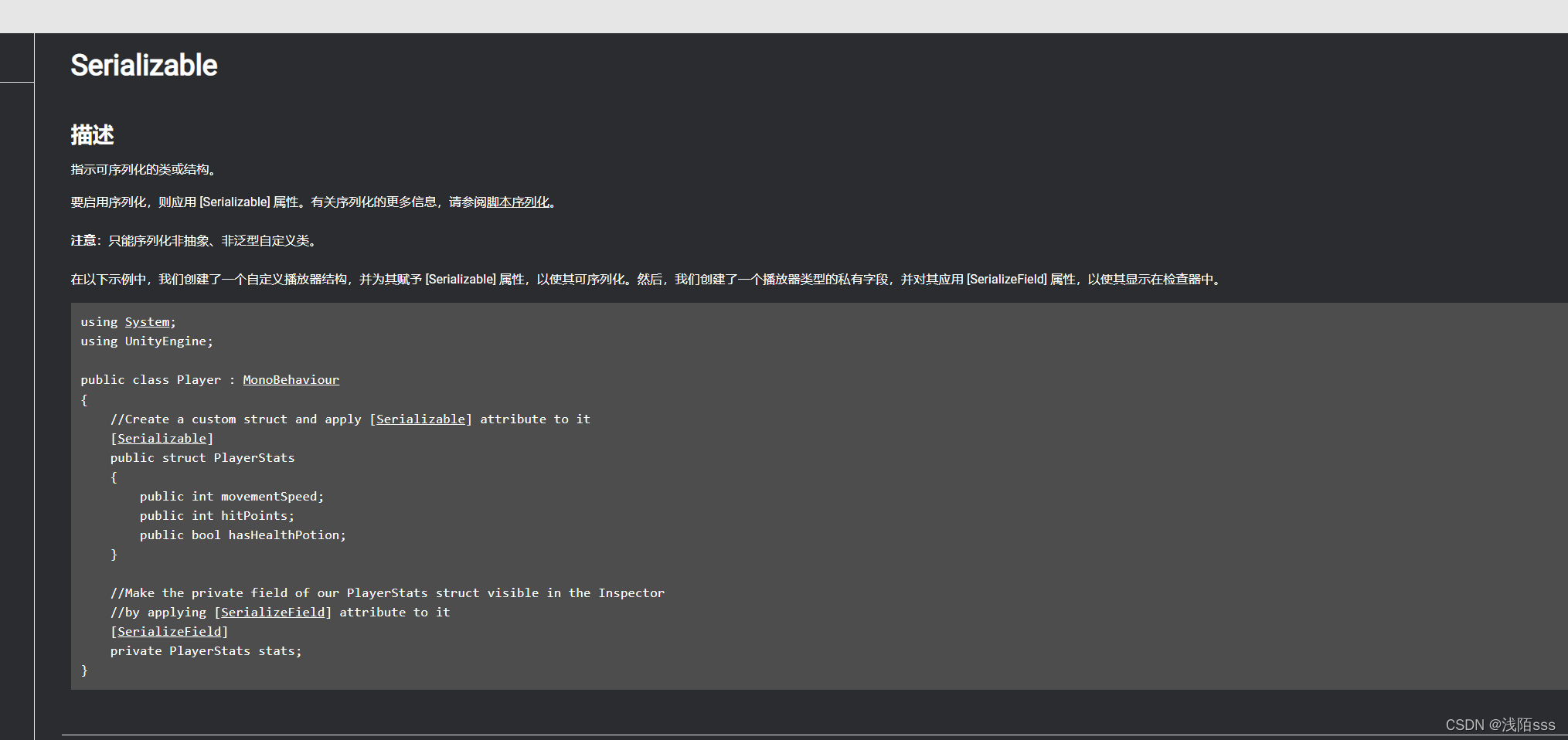 2.如果要序列化自定义 Struct 字段,则必须为该 Struct 给定 [System.Serializable] 属性。