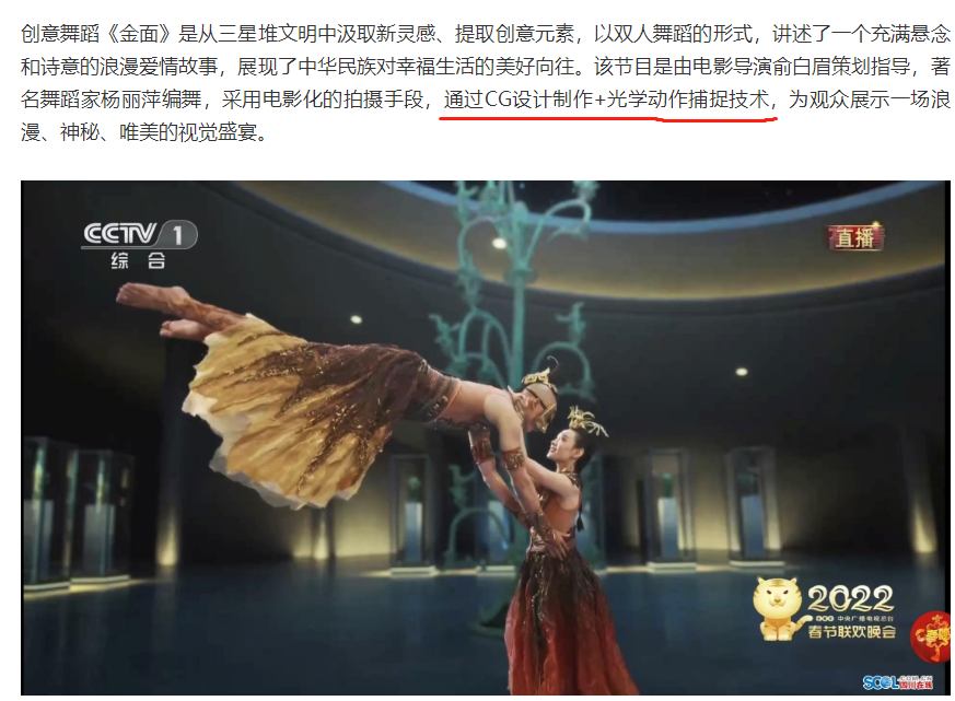 据网上资料了解,春晚为了给大家呈现出一场“沉浸式”视觉盛宴,在舞台设计和技术上都是下了一番功夫的,除了央妈的春晚,各地方台的春晚也都采用了先进的技术,比如东方卫视。多数舞台设计都采用的全息投影和XR或者AR\VR等技术,动作捕捉这项技术借助这些玄幻美妙的舞台效果逐渐被大家熟悉。