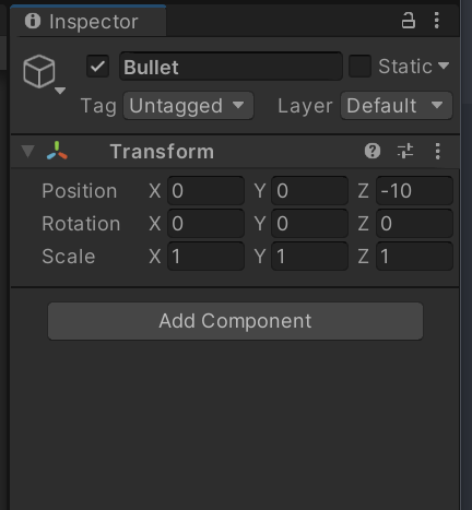但是由于子弹物体并没有挂载对应的脚本组件,导致了获取失败。