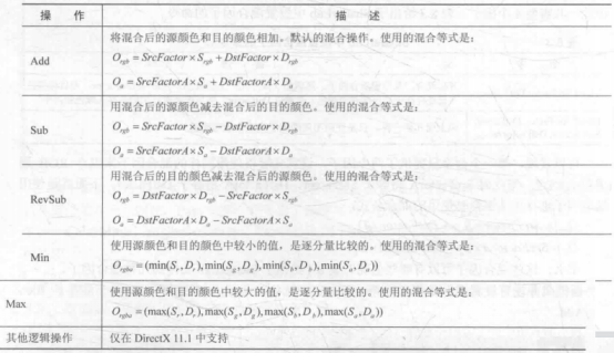 虽然上面使用Min和Max混合操作时仍然设置了混合因子,但实际上他们并不会对结果有任何影响,因为Min和Max混合操作回忽略混合因子。另一点是,虽然上面有混合模式并没有设置混合操作的种类,但是他们默认就是使用加法操作,相当于设置了BlendOpAdd。