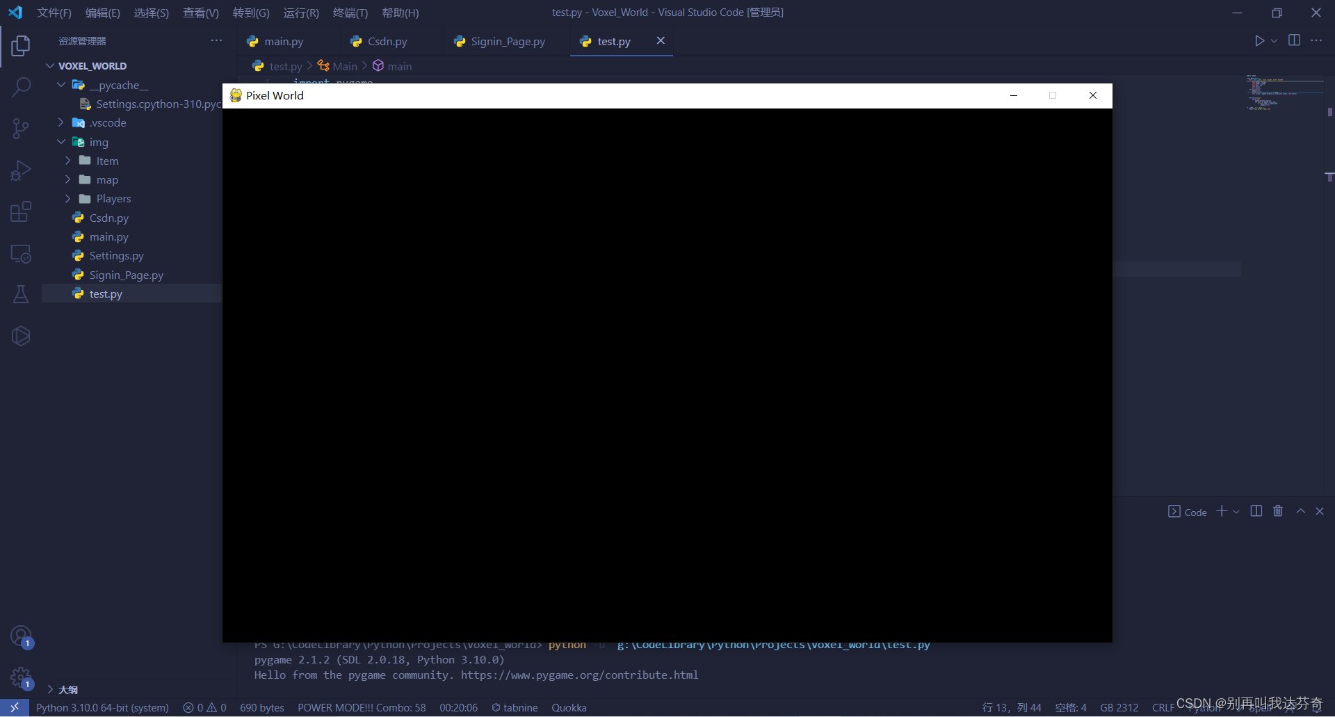 接下来我会在这个号持续更新我的游戏开发日记——这是一款RPG类游戏名为“像素世界”,游戏主体由Python的Pygame库实现,登录系统可能会以Tkinter或Easygui实现。主要是记录我的游戏开发的过程,希望我能坚持下去吧!