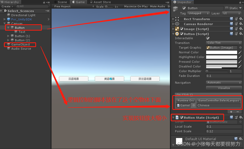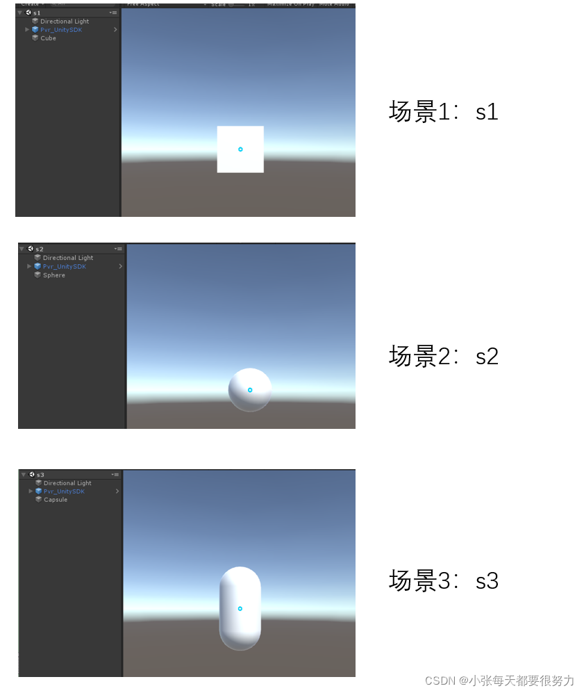场景A->场景C,但是场景C资源太大了,直接加载跳转时会出现跳转场景C的时候出现卡顿,因此在场景加载的时候,做一个场景B(黑幕效果)的过渡,不至于卡顿的太尴尬,于是需要实现场景A->场景B->场景C。