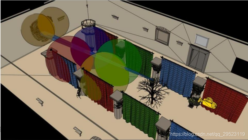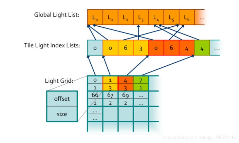 基于块剔除点光源,顾名思义,? 把整个屏幕分为N多块,并且通过ComputeShader并行计算每个存储的点光源Index列表,? 在像素着色的时候根据像素位置,计算出像素所在的Tile的光源List,最终进行光照计算,这样剔除光源的效率比直接暴力遍历所有光源高。
