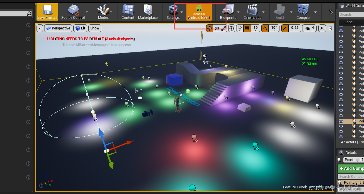 最近闲着没事想熟悉下UE4的图形模块(差不多算第一次碰这玩意),自己想寻找个需求,目前UE4 4.27的 Mobile Forward是不支持多光源的,默认是最大支持到4栈点光源. 于是,我萌发了一点想法,通过改造UE的Mobile Forward管线支持多光源剔除.