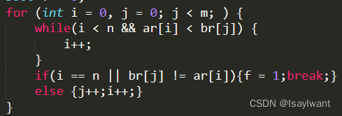 ?用j控制br 用i控制ar 1.出循环的条件是br所有的元素都找到了对应的ar ,j < m