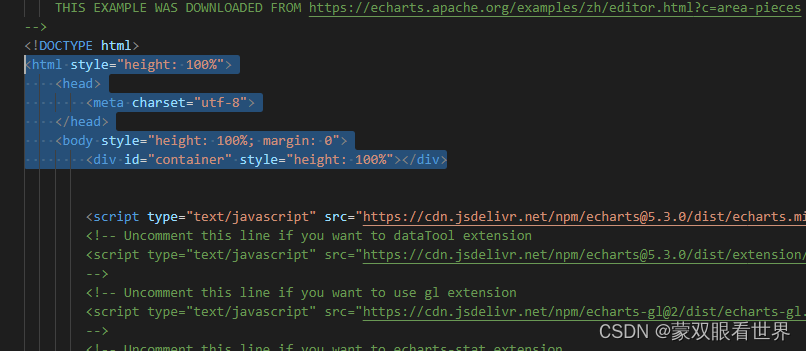 ??? ECharts 安装 | 菜鸟教程ECharts 安装 1、独立版本 我们可以在直接下载 echarts.min.js 并用 <script> 标签引入。 echarts.min.js(4.7.0) 另外,开发环境下可以使用源代码版本 echarts.js 并用 <script> 标签引入,源码版本包含了常见的错误提示和警告。 echarts.js(4.7.0) 我们也可以在 ECharts 的官网上直接下载.. https://www.runoob.com/echarts/echarts-install.html使用前先看菜鸟教程。