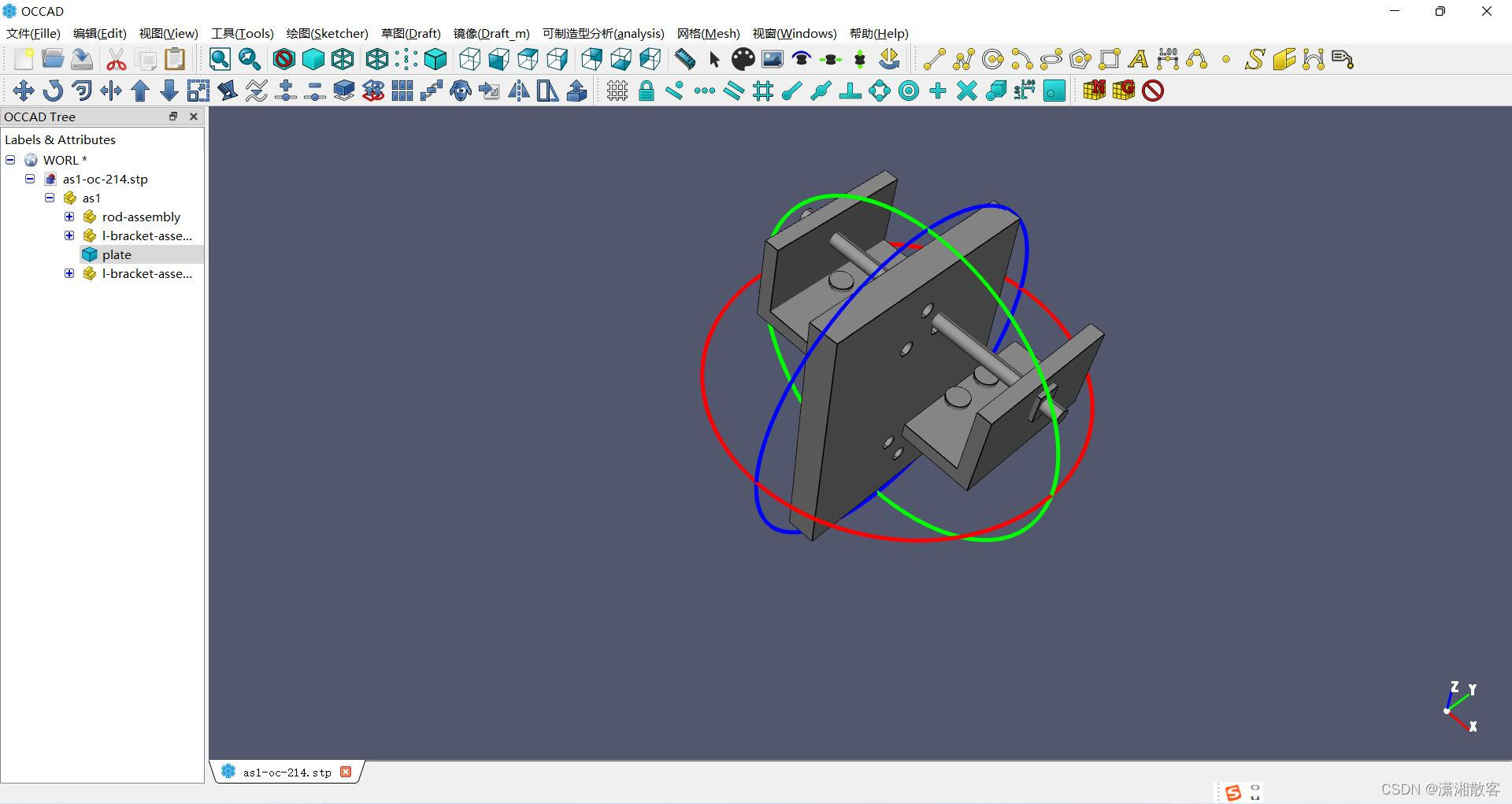 ?参考freecad操纵器的方式,利用osg的TranslateAxisDragger、TrackballDragger、ScaleAxisDragger实现了一个粗糙的操纵器功能,在测试后,功能可以和freecad一致,后续可以考虑进一步修改操纵器的样式,效果如下: