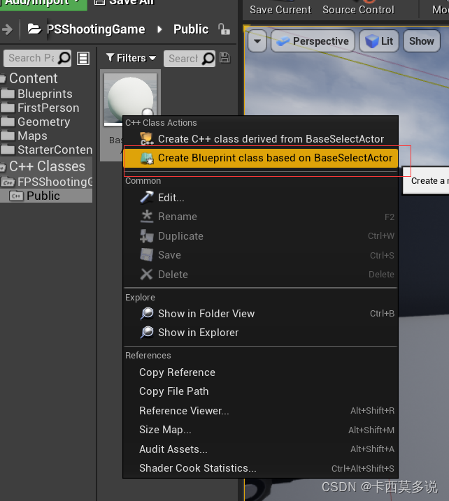 ?基于此C++类创建一个蓝图类,可以在这个蓝图类中处理一些在C++中声明的可以在编辑器中赋值或者修改的属性。