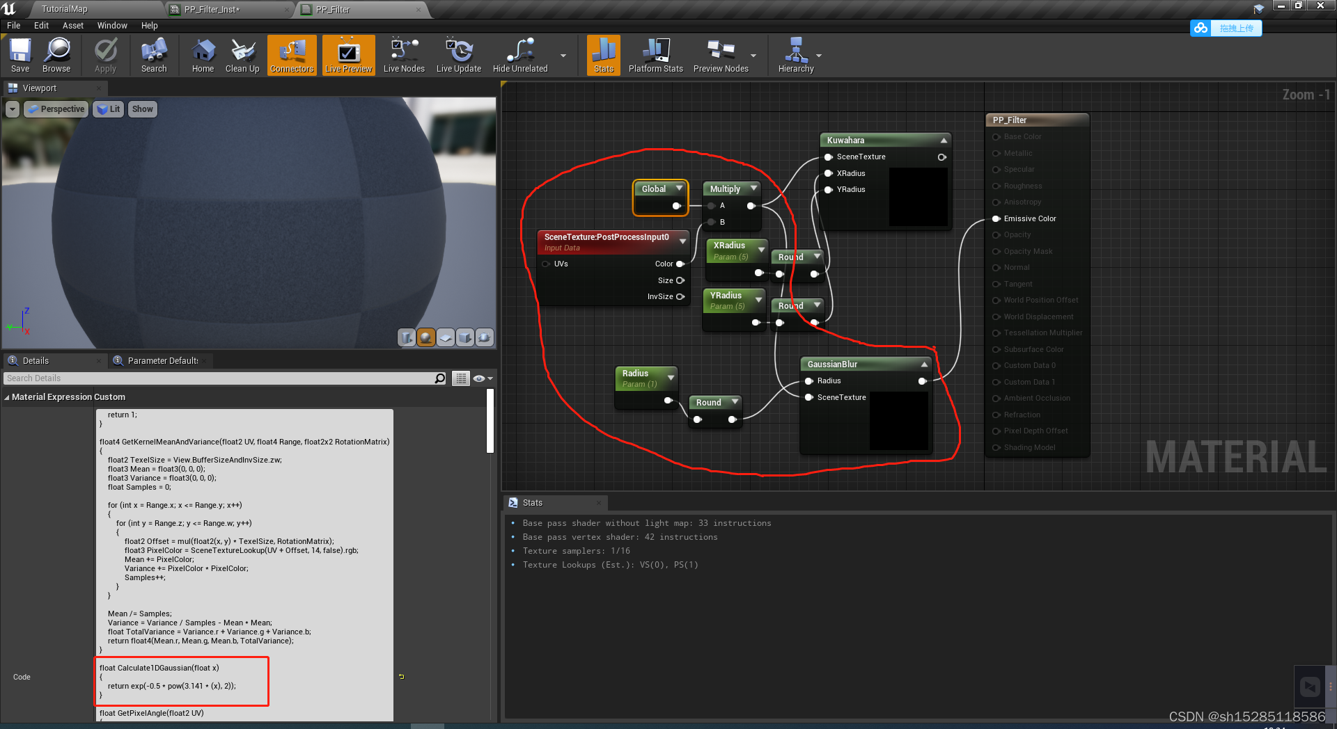 float Weight = Calculate1DGaussian(x / Radius) * Calculate1DGaussian(y / Radius);