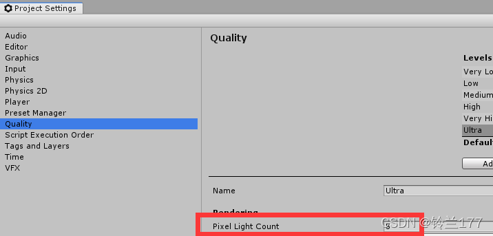 ??????? 另一个Pass为ForwardAdd,这个Pass里面会渲染其他逐像素光源(逐像素)。多少盏由下面这个设置决定。