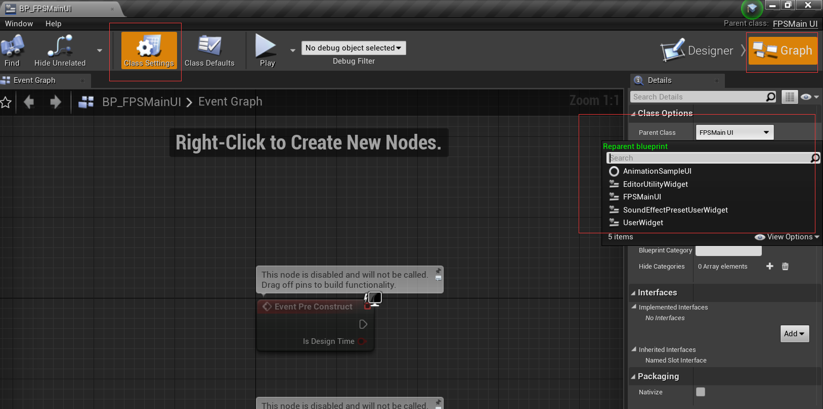 之后,创建蓝图的UserWidget,在类设置的地方,让创建的蓝图类的父类设置成自己创建的C++类;