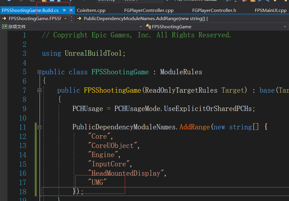 首先添加UMG模块,在.Build.cs文件中添加“UMG”模块;