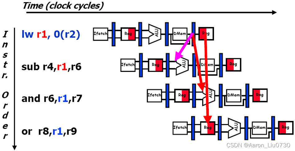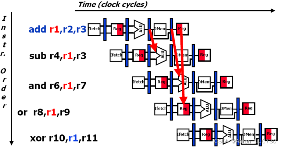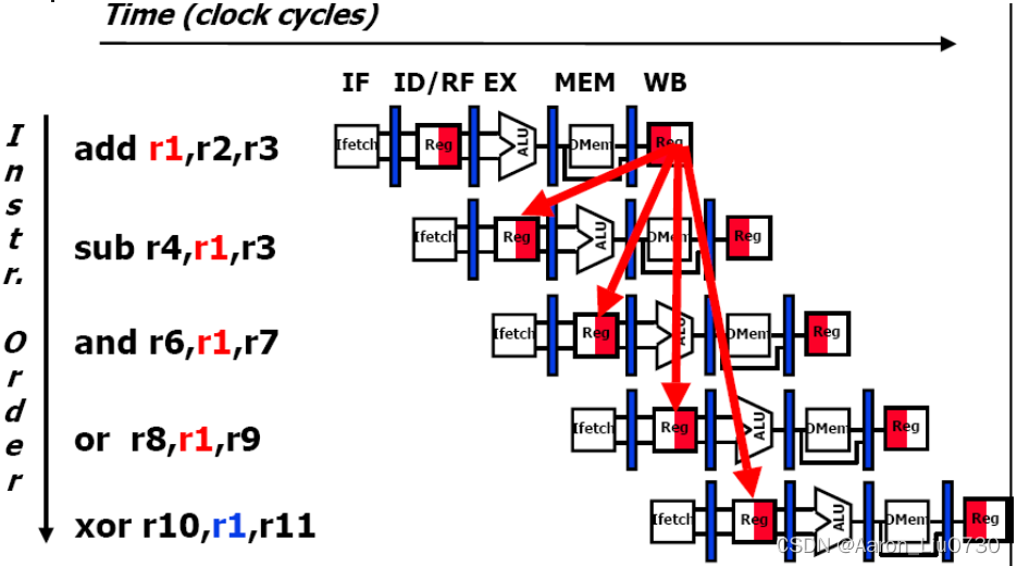 【例】流水线中有三类数据相关冲突:先写后读相关( RAW);先读后写相关( WAR);写-写相关(WRW)。判断以下三组指令各存在哪种类型的数据相关。