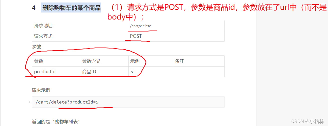1.【?删除购物车的某个商品】接口文档;
