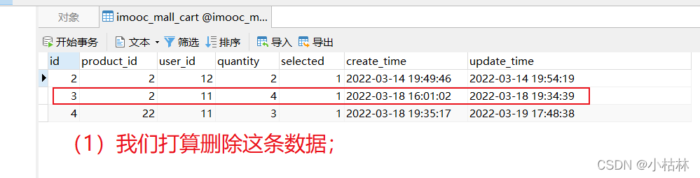 (1)本篇博客的主要内容是,开发【删除购物车的某个商品】接口;