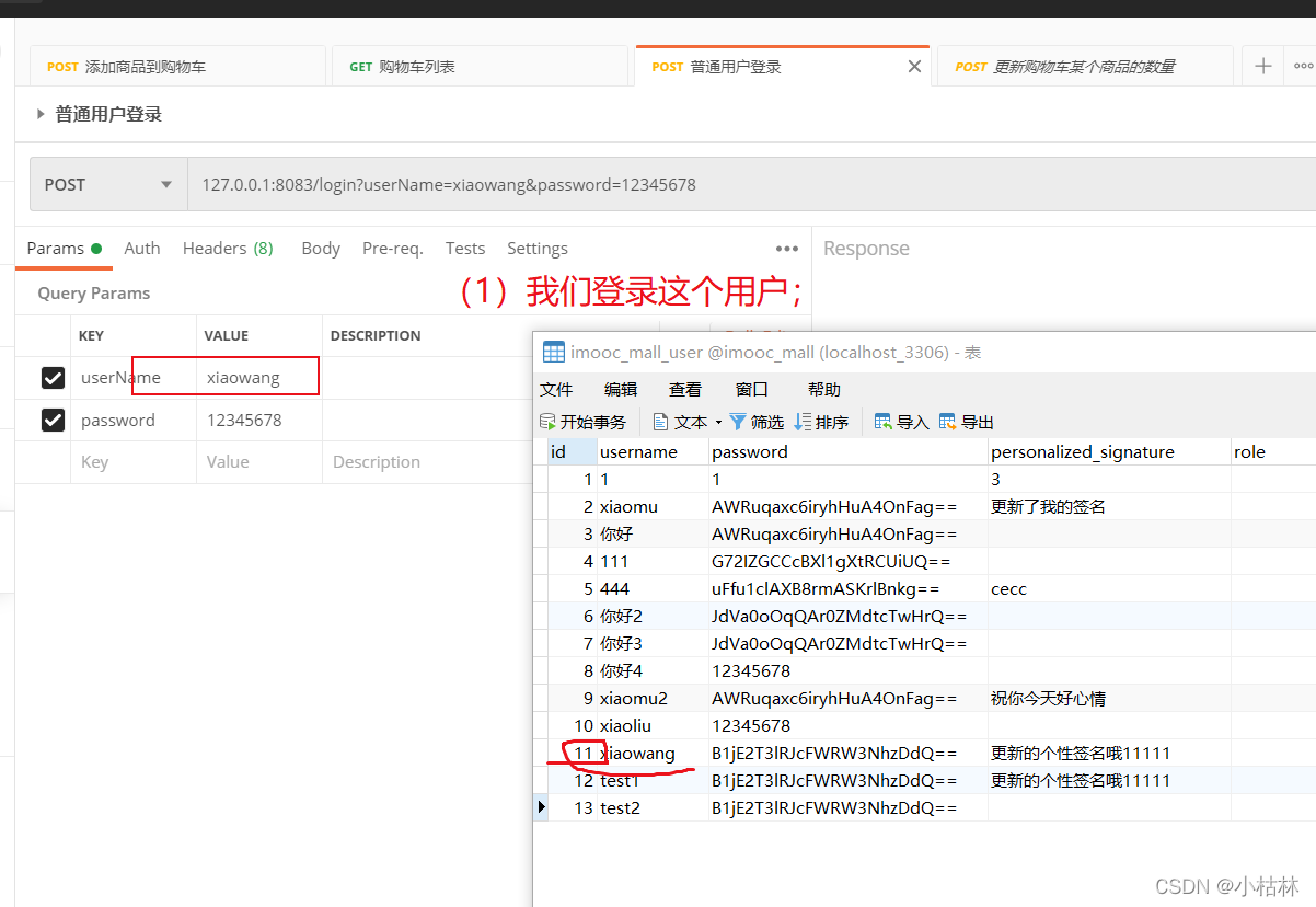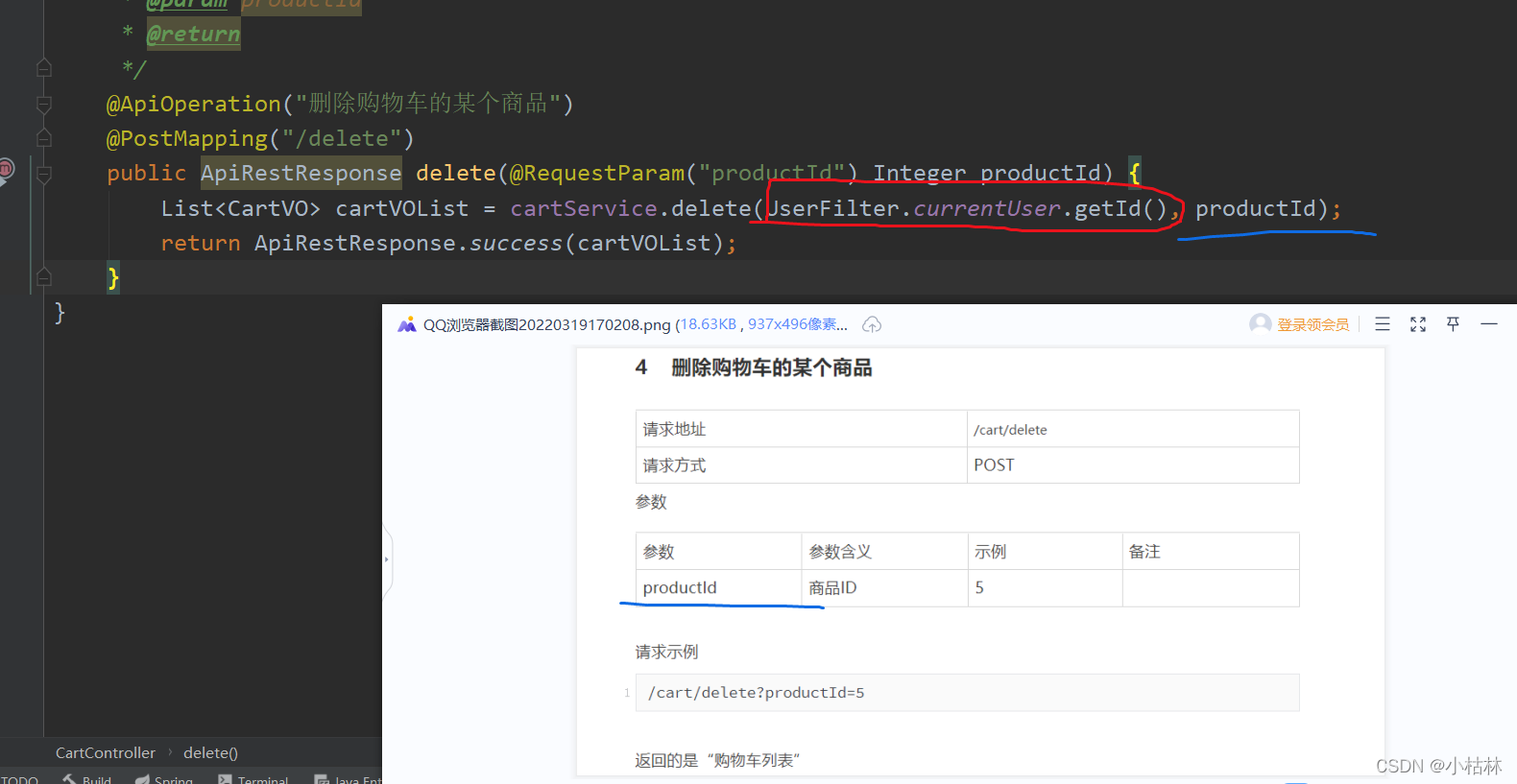 (1)这个接口,参数只有productId;不能传入userId和cartId(这主要是出于安全考虑);