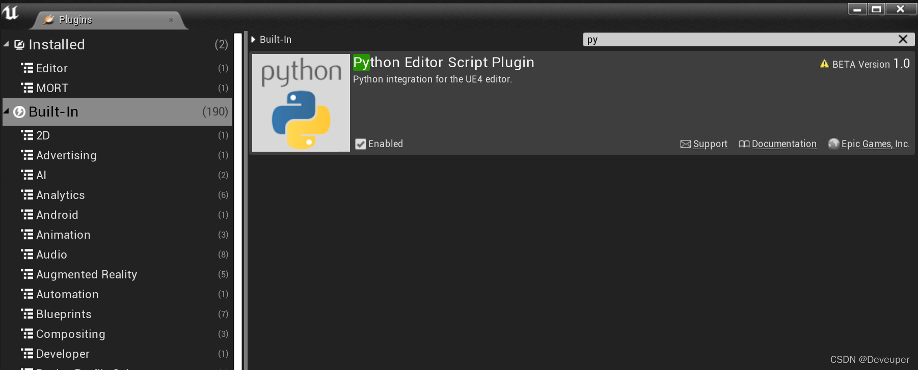 添加PublicDependencyModuleNames.AddRange(new string[] { "Python", "PythonScriptPlugin" });