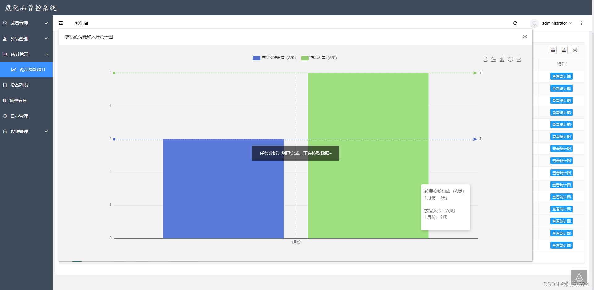 2 | 药品交接出库(预废弃A=>B)统计任务 | 入库表(tp_drug_out_list)-药品入库统计 | 5e39c8faedc3e0f2f1bac00d1dcfc3ff | tp_drug_out_list | delete_time=0 and order_type=1 and status=7 and specs= "500ml" and purification="化学纯" and drug_id=242 | create_time | 0 | id | count | 2 | 1106154643.175800 | 1 | 0 | 0 | 1643098395 |