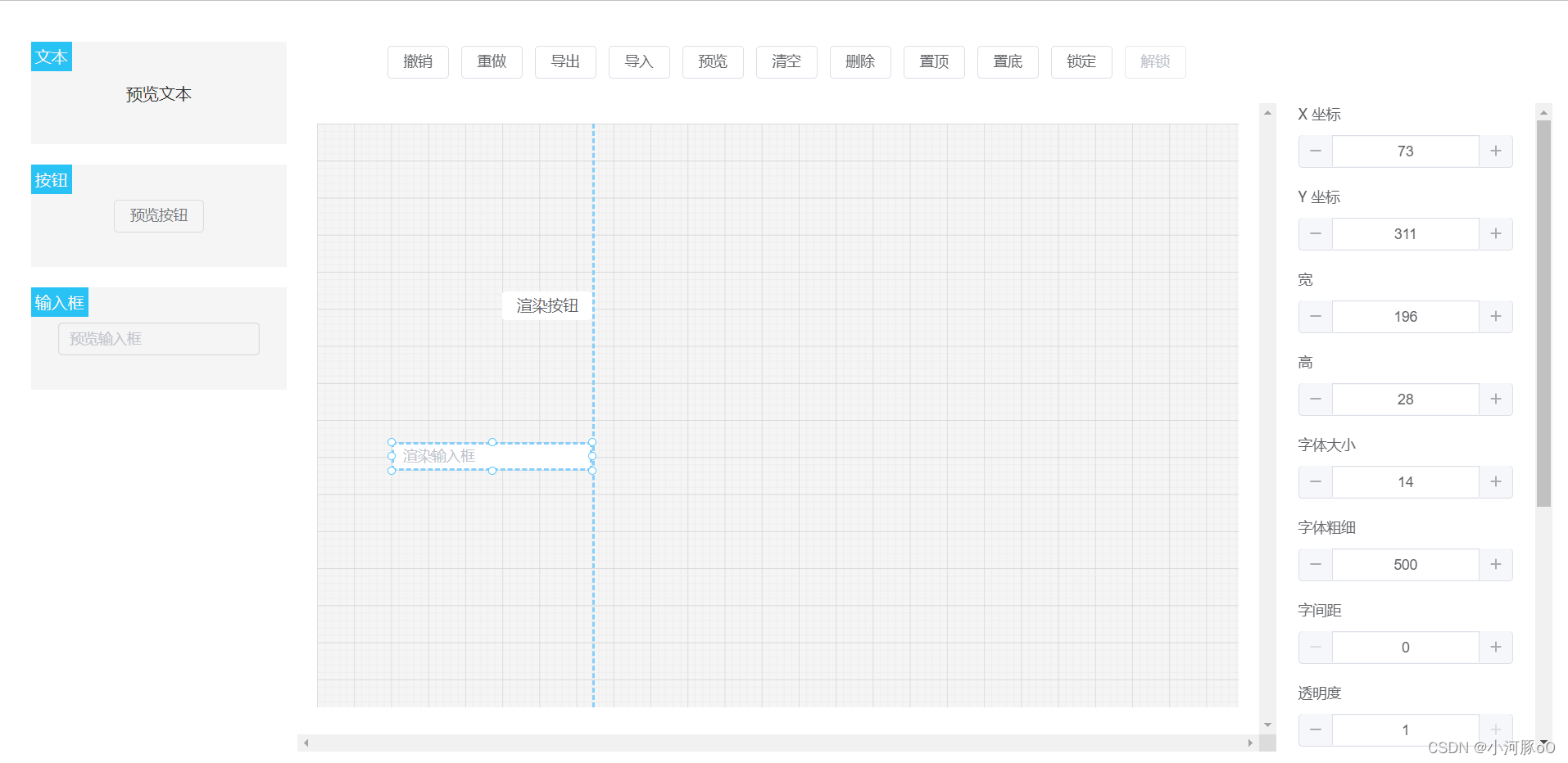 在上一篇文章中,我们实现了预览区组件的拖拽渲染的功能,在一篇文章中,我们将实现在组件拖拽的过程中形成辅助线的功能。(让组件更容易上下左右对齐的功能)。