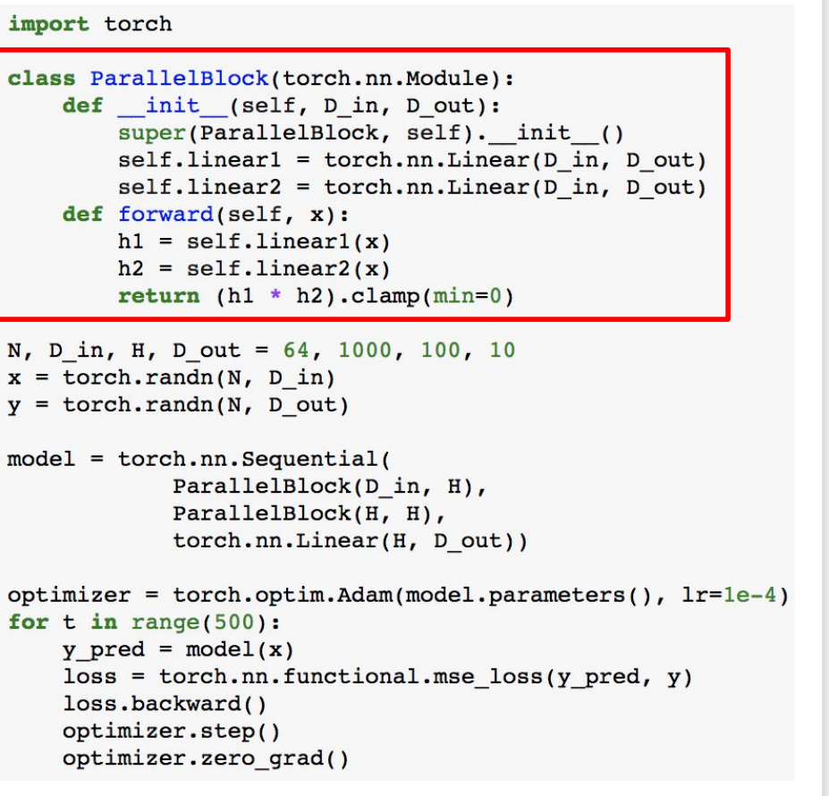 使用torch.nn.Module可以更加方便的定义一个新的模型 例子如下: