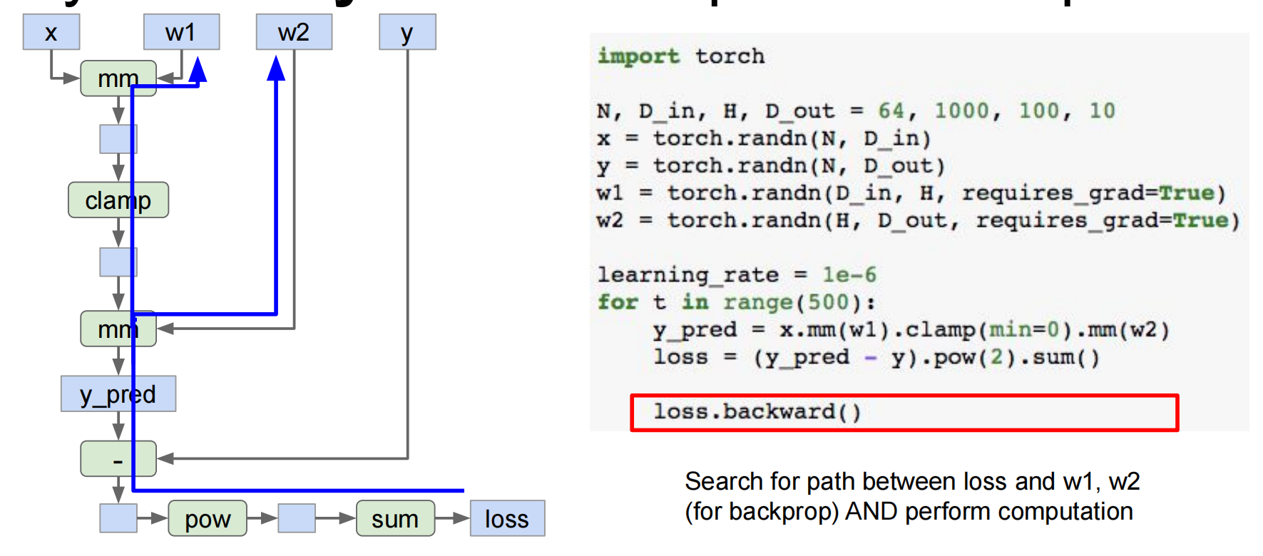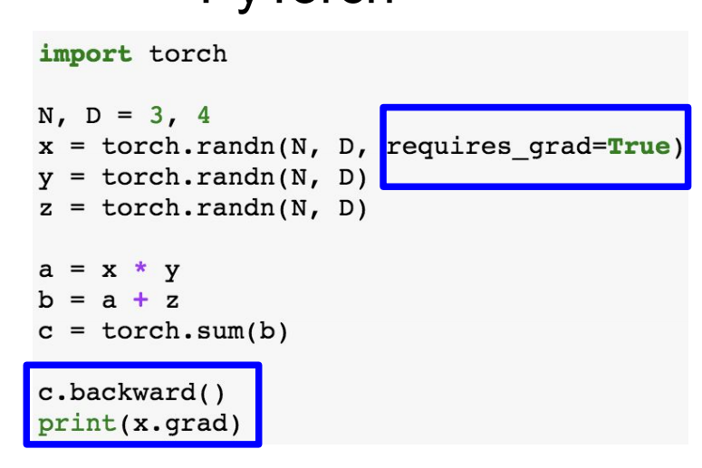 torch和tensorflow的优势在于: (1)自动计算梯度 如图所示