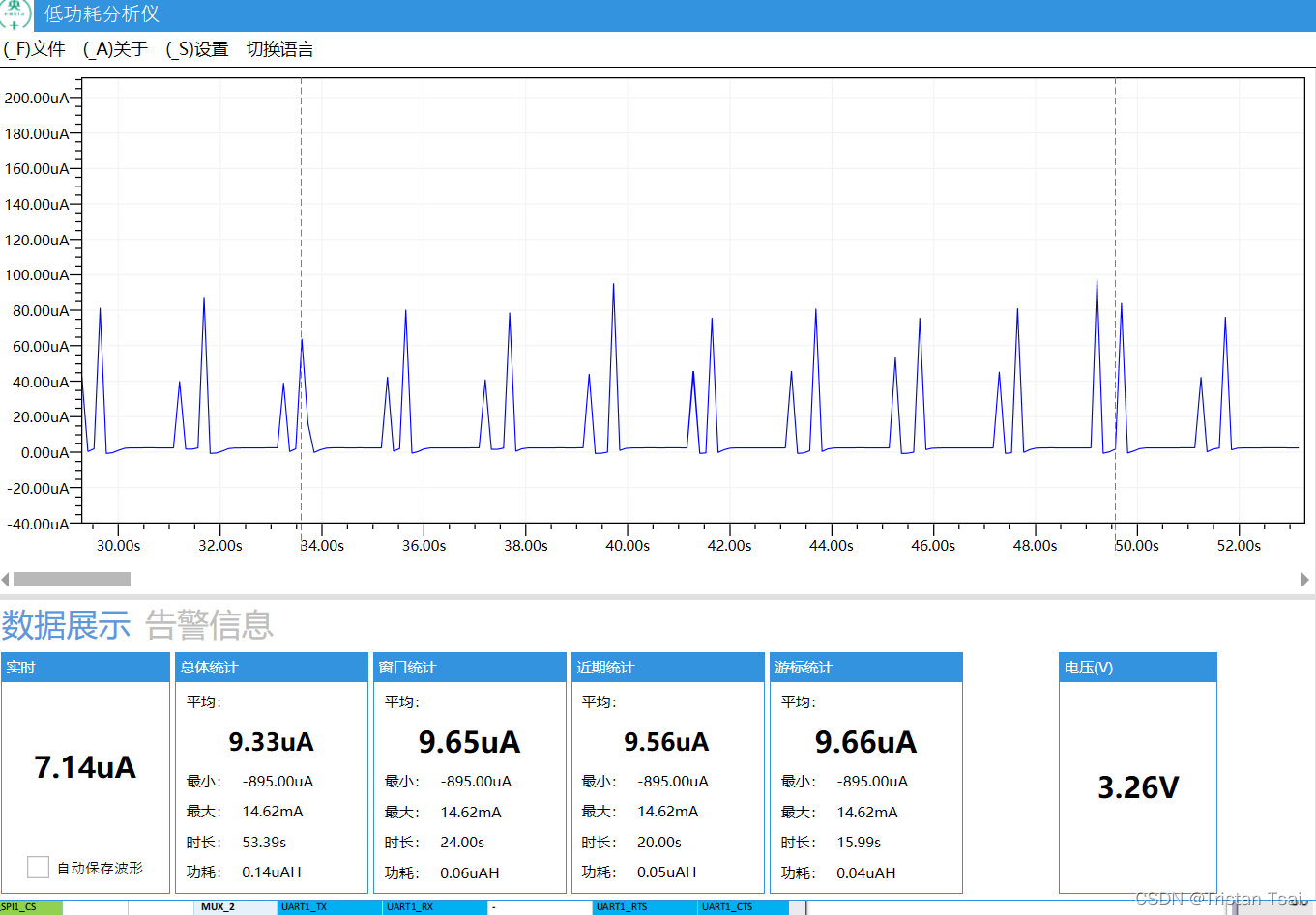 4.烧写到评估版,使用电流分析仪连接测试