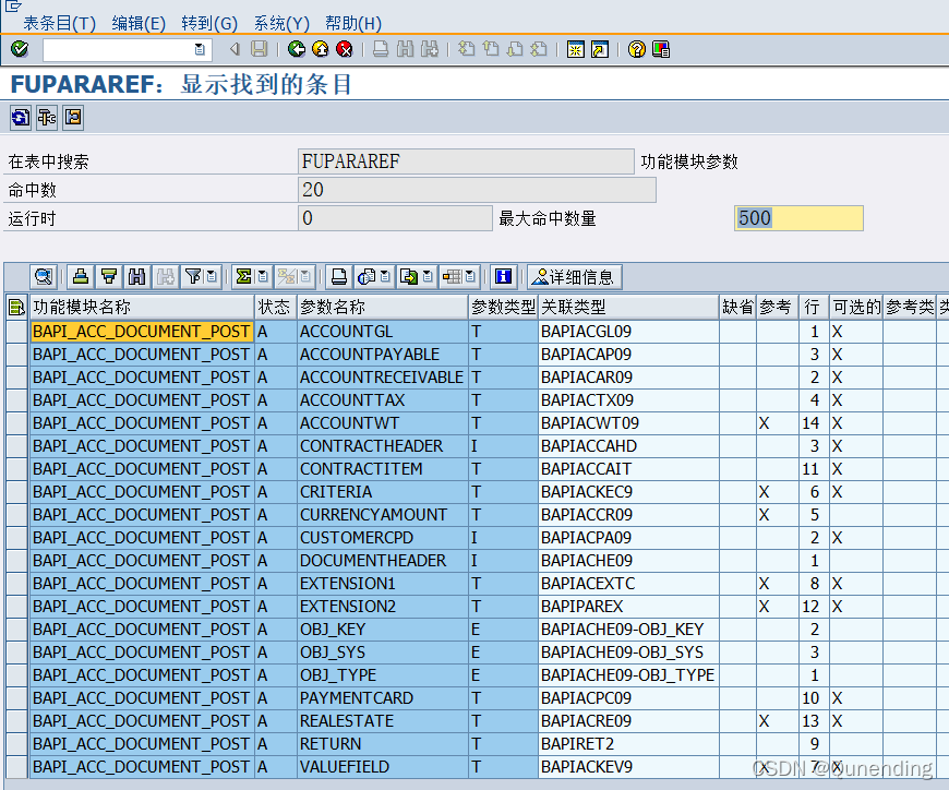 lv_FUNCNAME 就是SE37能查到的function函数,传入函数就能返回函数的各个参数 ,changing参数中的??lt_import[] 是传入参数列表,lt_export[]是传出参数列表 ,lt_change[]是正在更改参数列表,lt_tables[]是表参数列表。