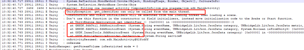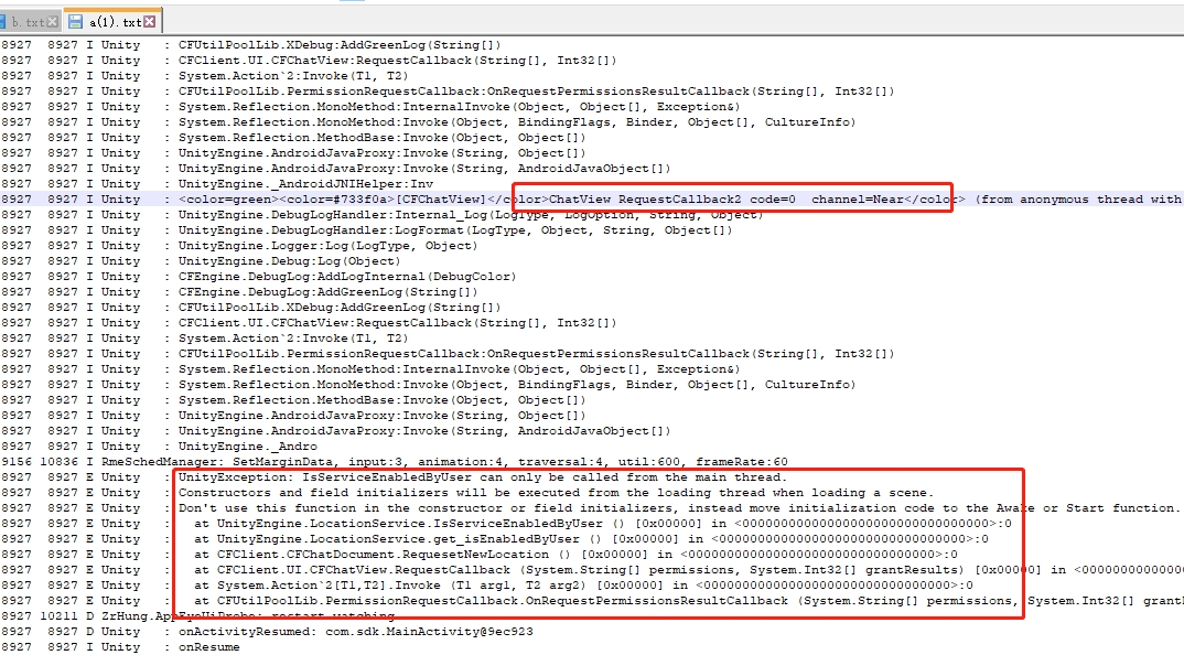 3、我们想在回调的时候,去请求定位信息 错误点1:我们在回调中,输出:Input.location.isEnabledByUser的值,结果报错:  这个表明Input.location.isEnabledByUser,不能在子线程中调用,于是我就把这个代码去掉,之后,确实可以调用到我们sdk中的请求代码的函数了。 错误点2:sdk中的请求函数,也报错: