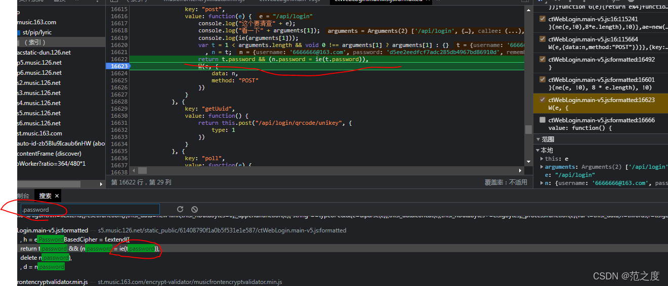 第二部:搜素并下断点,看时候能断住,并且是没加密之前(有个设想,就是所有函数arguement都发送console,然后观测值的产生,但怕值太多)