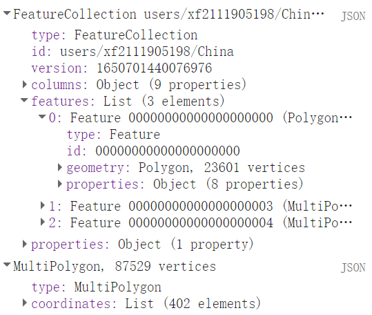 ?????????这个转换只是对图形的格式进行了转换,类似于将jpg格式转换成tif格式,这个转换的目的是因为目前GEE对Shp文件的数据支持仍然不完善,转换成GeoJSON格式储存和下载,然后再将其转换为Shp文件就可以避免出现乱码。