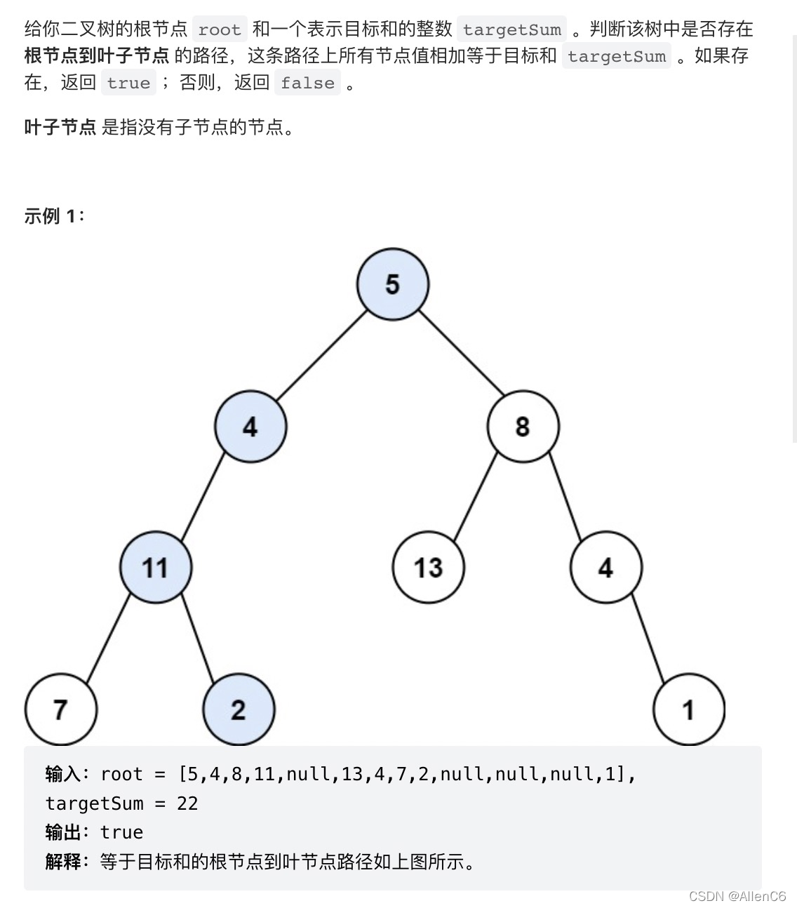 public boolean hasPathSum(TreeNode root, int targetSum) {