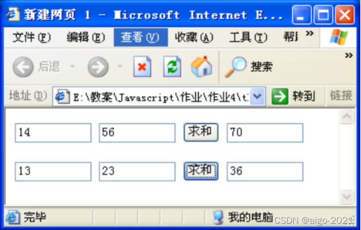 <input type="button" value="求和" onclick="button1();">//添加按钮点击事件