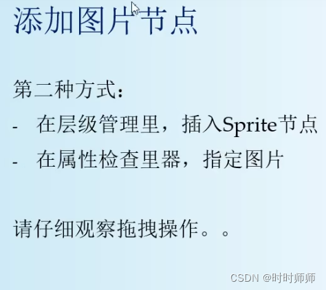 ? 3.1编辑器界面 ? ? 场景Scene? 资源 Asset(Texture 图片素材;audioClip 音频素材;)  ? ? ?4.1场景编辑器 ? ? ?   4.2添加节点? ? 把图片拖拽进入Canvas下面。 ? ? ? ?Main Scene场景文件中使用json代码保存了图片的路径和名称。 ? 4.3节点的操作 ? ?疑惑:缩放和矩形变换有什么区别?       ?    ?在属性检查器中设置才是一个精确的数值。  ? ?4.4位置与锚点 ? ? ?如下图,图片的坐标轴原点就是锚点(Anchor)。  ? ? 相对坐标 父节点(Canvas)、子节点(佩奇、Main Camera)。 ?佩奇的坐标是相对于世界坐标系的原点Canvas的(480,320)这个点来定坐标的。佩奇的position和Canvas这个点重合时,position=(0,0)。 ? ? ?4.5 游戏的运行 ???????? ? ?两种方式任选其一。  ?设置默认浏览器:   浏览器运行之后这里也可以选择设置中已有的功能。  5.1添加图片节点 ? ?   ?在右侧添加组件,这样就可以看到Sprite。 ? ?操作步骤:  ? ? 拖拽:鼠标移动到节点上,然后拖动到Sprite Frame就可以了,不要单击。 ?5.2 文本节点   右侧也可以选择添加组件来调整文本节点的细节:字体、颜色、大小、等等。  ?5.3添加UI节点 ? ? ? ?鼠标移到文字上:能显示这个属性的具体描述 ? 创建一个输入框:  ? 一些输入框的名字。 ?5.5节点与组件 ? ?节点Node的功能是由它下面的XX组件(Sprite图片、Label文本等)来决定的。 在右侧的“添加组件”中选择。? 渲染类型组件只能选择一个。   5.5父子节点 ? ? 6.1 VSCode环境 ?  ?6.2创建游戏脚本 TypeScript其实就是JavaScript的加强版。 解释: JavaScript是无类型的,所以在编写的时候没有工具提示,比较麻烦。所以就发明了强类型的TypeScript,具有工具提示。 ?  ? 按照默认的VS Code 安装步骤,安装之后,在cocos中配置VS Code,浏览,然后搜索 VS Code,找到Code.exe。点击保存。  新建游戏脚本,就会自动打开VS Code。  假如输入状态紊乱,那么可以切换一下中文,或者切换到其他窗口,再切回来。  ? 步骤演示: 创建文件夹,然后点击选中图片佩奇,在右下角添加组件——用户脚本组件——Pigscript。 ?  选中之后会出现蓝色的边框。 ? 在cocos中不能直接编辑脚本,需要双击这个脚本,就会自动打开VS Code脚本窗口编辑。  ?在VS Code中编辑完成之后,Ctrl+S保存,cocos会自动刷新右侧的代码内容。   ? ?6.3 脚本的运行  双击打开脚本之后先关闭脚本窗口(因为这样打开的窗口,直接进行编辑有一个BUG,所以需要先把这个脚本关闭),然后在右侧重新找到代码打开,再进行编辑。   选择模拟器,还有下方的Resume script execution按钮(继续脚本执行),才能出现打印的日志。   ?伪代码理解: ?  ?生命周期回调 · Cocos Creator ?https://docs.cocos.com/creator/manual/zh/scripting/life-cycle-callbacks.html   ?6.4 事件响应处理   方法名不加()。并不是要调用它。   ?6.5脚本的调试 ?  ? ?7.1 TypeScript 具体用法 官网地址:?TypeScript: JavaScript With Syntax For Types. ?https://www.typescriptlang.org/zh/ ?  ?  ?这样如下图,就有提示了: ? ?7.2 属性的定义 ? ?加了@property之后,用户脚本组件的PigeScript中就会自动加上这个time属性。开发者就可以从这个属性面板中进行初始化设置。但是这里的修改不会影响代码,只会影响编译结果。
