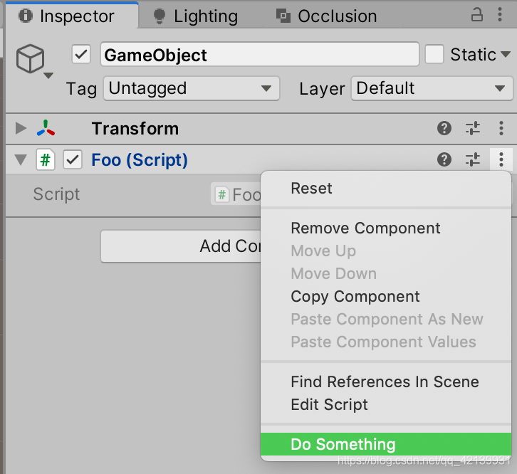 - ?ContextMenu?允许我们在Inspect检视面板对Component组件添加菜单功能。
