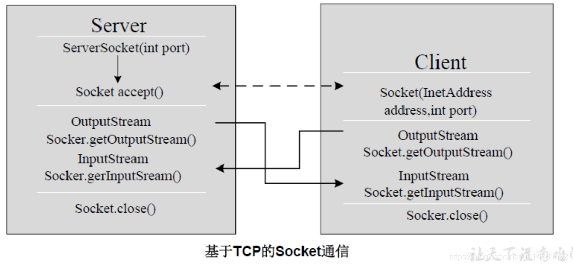 Java语言的基于套接字编程分为服务端编程和客户端编程,其通信模型如图所示: