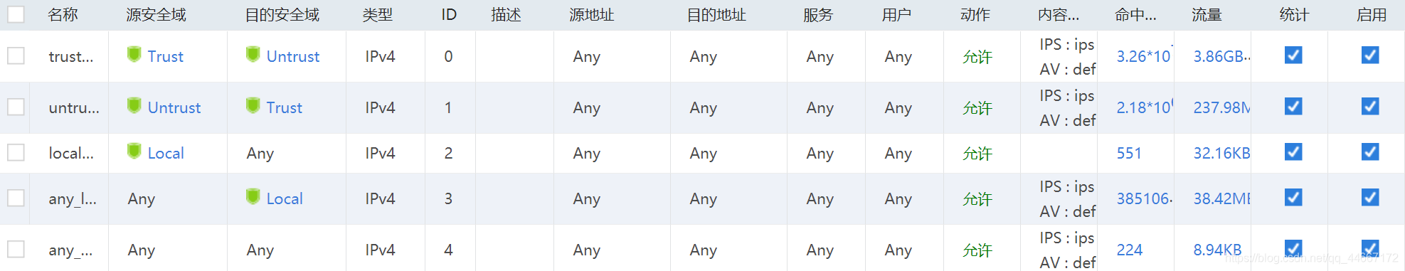 ?acl advanced name IPsec_feita_IPv4_1 ?rule 1 permit ip source 192.168.3.0 0.0.0.255 destination 192.168.1.0 0.0.0.255 ?rule 2 permit ip source 192.168.7.0 0.0.0.255 destination 192.168.1.0 0.0.0.255 ?rule 3 permit ip source 192.168.2.0 0.0.3.255 destination 192.168.1.0 0.0.0.255 ?rule 4 permit ip source 192.168.0.0 0.0.0.255 destination 192.168.1.0 0.0.0.255