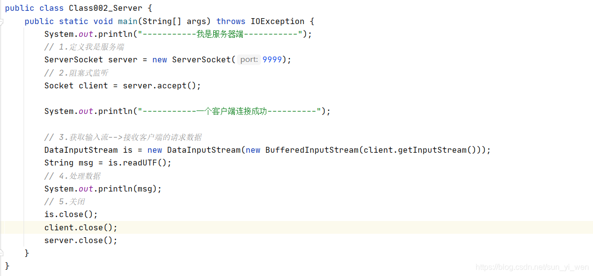 ServerSocket(int port) 创建绑定到指定端口的服务器套接字。