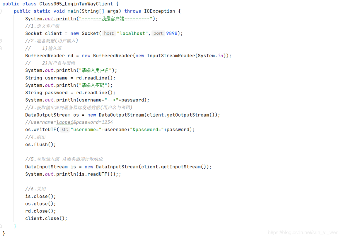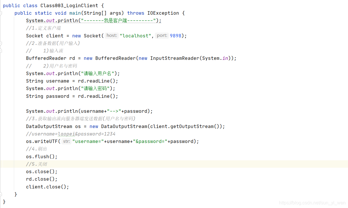 3.获取输出流向服务器端发送数据(用户名与密码)