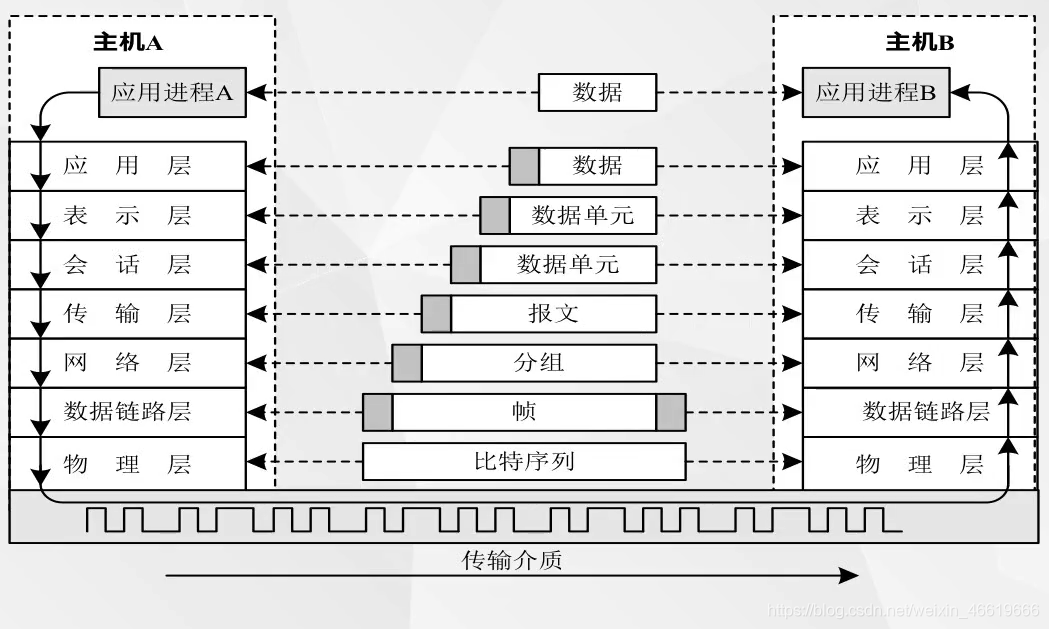 - 不同节点的对等层通过协议来实现对等层次之间的通信
