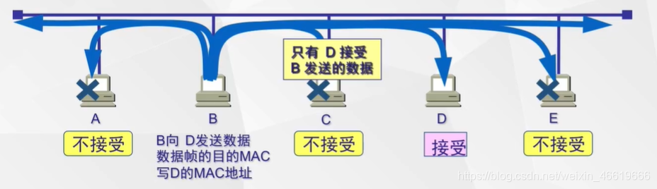 - ? ? ? ? ? ? 寻址问题:如何在广播式的网络完成一对一通信(MAC地址)